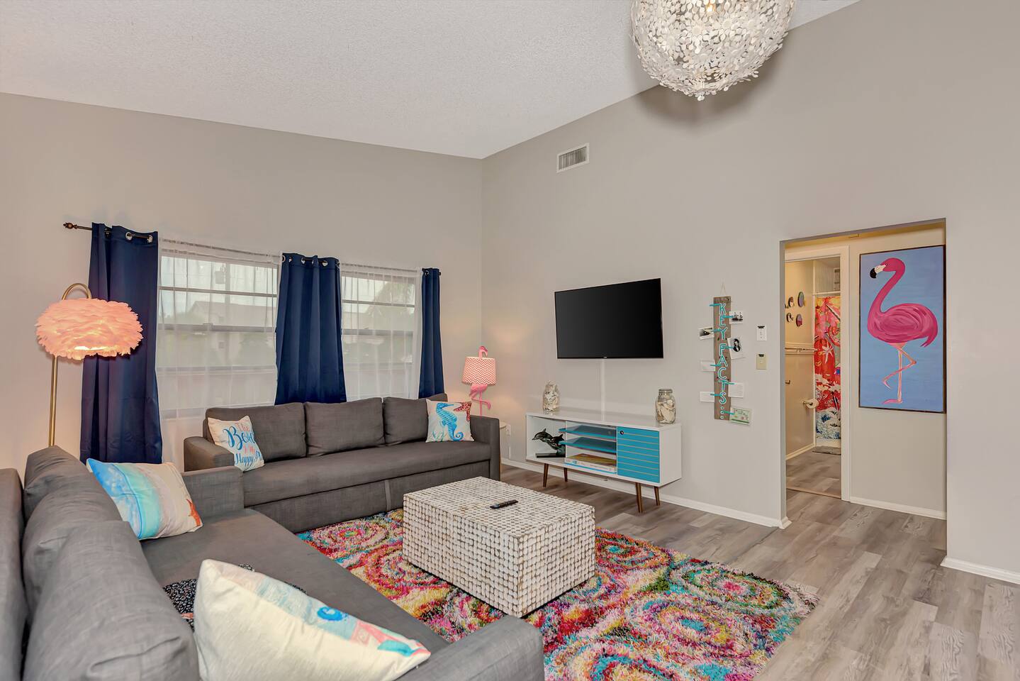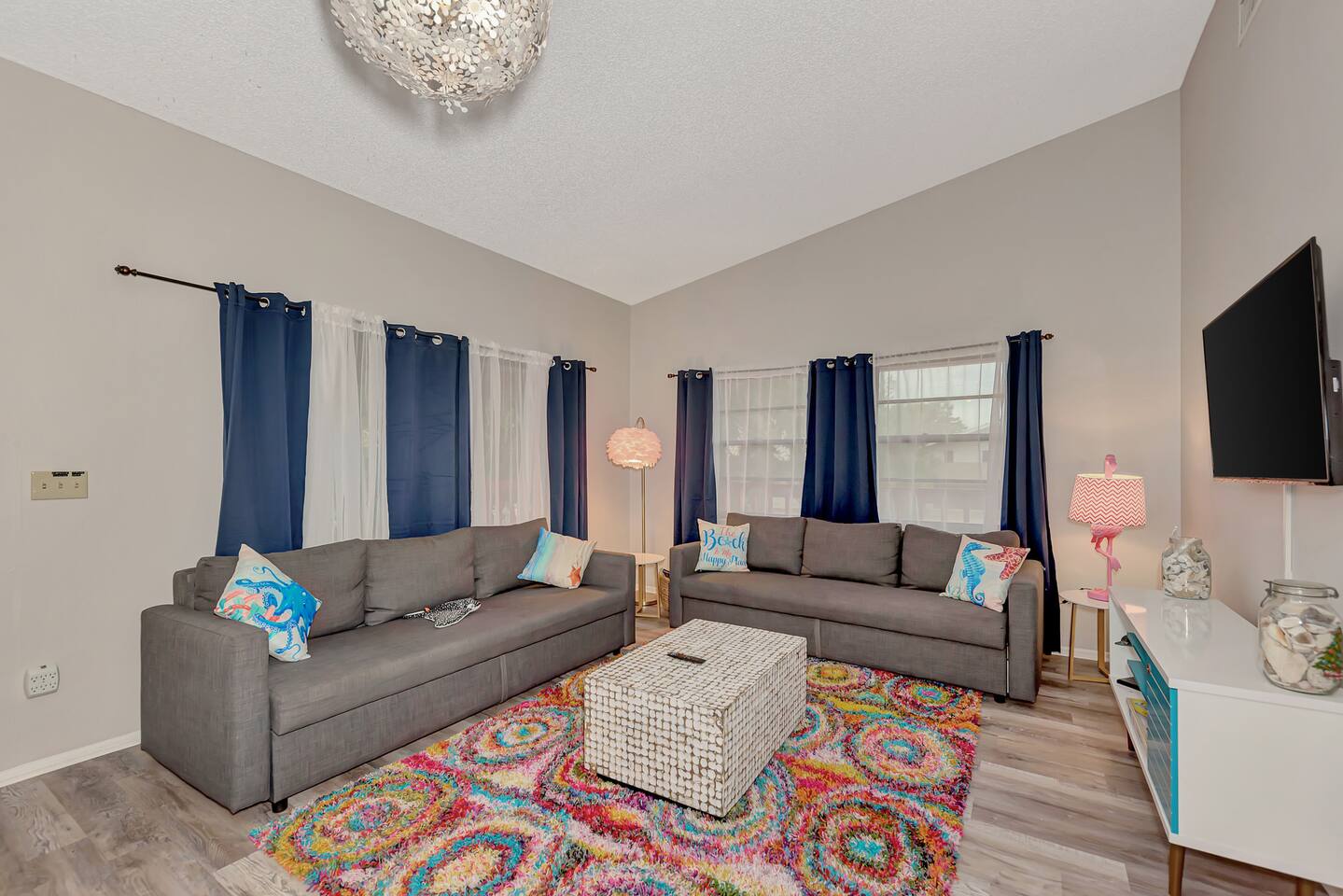Step into this stylish 2BR 2BA beachfront oasis in Siesta Key, just steps from the sunny beach, restaurants, shops & local attractions. Enjoy a colorful, modern design, private outdoor amenities, shared pool the perfect setting for a memorable Florida getaway. ☀ Shared pool ☀ BBQ ☀ Steps From Beach ☀ Tiki Hut ☀ Private Hot Tub