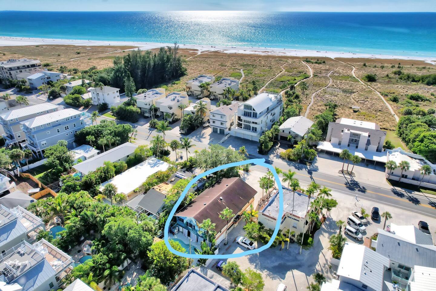 The duplex is in the heart of Siesta Key, offering a unique and comfortable base with beach access just across the street. Siesta Key is renowned for having some of the most breathtaking beaches in the United States. Siesta Beach, in particular, has earned acclaim for its powdery, quartz-crystal sands, which stay cool even on the warmest days. Sunset at Siesta Beach is a spectacle not to be missed, with hues of orange and pink painting the sky as the sun dips below the horizon. Beyond the beaches, Siesta Key offers a wide range of outdoor activities. Kayak through the calm waters of the mangrove tunnels at South Lido County Park, paddleboarding in the Gulf of Mexico, or embark on a fishing charter to catch your dinner. Nature enthusiasts will appreciate the lush landscapes and wildlife in the nearby Myakka River State Park. Siesta Key Village is the heart of the island's dining, shopping, and entertainment scene. Stroll along quaint streets with boutiques, surf shops, and art galleries. Savor fresh seafood at beachfront restaurants, sip tropical cocktails at vibrant bars, and enjoy live music under the stars. The warm waters surrounding Siesta Key beckon adventure seekers to explore. Try windsurfing, jet skiing, or parasailing for an adrenaline rush. Scuba diving and snorkeling enthusiasts will be delighted by the vibrant underwater world of the Gulf. For a more leisurely experience, rent a boat, explore the Intracoastal Waterway, or take a dolphin-watching tour. Come and discover the beauty and tranquility of this coastal gem, where every day feels like a beach day in paradise. Here are some places of interest you'll be looking to visit during your stay. ✔ Siesta Key Beach (1 min walk away) ✔ PARASAIL SIESTA (5 min away) ✔ Crescent Beach (4 min away) ✔ Siesta Key Watersports (5 min away) ✔ Siesta Key Village (2 min away) ✔ Marie Selby Botanical Gardens (14 min away) ✔ Sarasota Jungle Gardens (22 min away) ✔ Lido Key Beach (22 min away) ✔ South Lido County Park (24 min away) ✔ Mote Marine Laboratory & Aquarium (25 min away) ✔ St. Petersburg (54 min away) ✔ Tampa (1h away) ✔ Fort Myers (1h 15 min away) ***Distance times are calculated if traveling by car.