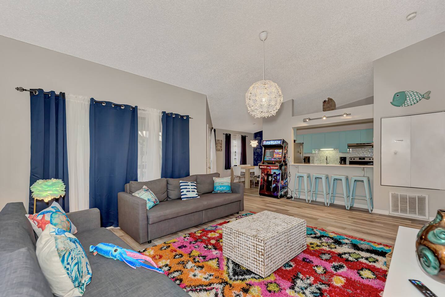 COMPLETELY PRIVATE! This stylish Siesta Key duplex offers two fully furnished units, perfect for relaxation, fun, and unforgettable Gulf Coast memories. ★Your stay includes: ☀ 2 Private Units ☀ 4 Comfortable Bedrooms + Sofa Beds ☀ 2 Living Rooms ☀ 2 Full Kitchens ☀ Arcade Machines ☀ Saltwater Pool & 2 Cabanas with Hot Tubs, TVs & BBQs ☀ Trendy Mural ☀ Wi-Fi & Smart TVs ☀ Parking ★ LIVING ROOM Comfortable and inviting, ideal for relaxing after a busy day or enjoying family fun. ☀ Two Comfortable Sofas with Pillows (can be converted into extra beds) ☀ Smart TVs with Roku ☀ Arcade Machines ☀ Foosball Table (one unit) ☀ Stylish Coffee Tables & Reading Lamps ★ KITCHENS & DINING Fully equipped kitchens with everything needed to prepare meals and enjoy dining together. ☀ Microwave, Stove, Oven, Toaster, Blender, Coffee Maker, Hot Water Kettle ☀ Refrigerator/Freezer, Dishwasher, Sink with Hot & Cold Water ☀ Plates, Glasses, Silverware, Pots & Pans ☀ Dining Table with Seating for 6 ☀ Kitchen Island with Seating for 4 ★ BEDROOMS & SLEEPING ARRANGEMENTS Four cozy bedrooms across two units, designed for maximum comfort and restful sleep. ☀ Master Bedrooms: Queen-Size Bed + Pull-Out Sofa Bed, Ensuite Bathroom ☀ Additional Bedrooms: Queen-Size Beds + Pull-Out Sofa Beds All bedrooms have these amenities: ☀ Premium Memory-Foam Mattresses, Sheets, Pillows ☀ Smart TV ☀ Closets, Dressers, Night Stands with Lamps ★ BATHROOMS Three full bathrooms stocked with essentials to keep everyone comfortable. ☀ Bathtub with Shower ☀ Walk-In Shower ☀ Vanity & Mirror ☀ Toilet & Fresh Towels ☀ Hair Dryer & Essential Toiletries ★ PATIO, CABANAS & POOL YARD Private outdoor space for sunbathing, swimming, and entertaining. ☀ Saltwater Heated Pool & Sun Lounges ☀ Two Cabanas with Hot Tubs ☀ Lounge Seating Areas ☀ Smart TVs in Cabanas ☀ Blackstone BBQ Griddles ☀ Patio with Al Fresco Dining & Lounge Seating Perfect for families, friends, or groups seeking a luxurious Siesta Key escape — book now and make unforgettable memories! <b>★☆ Guest Attractions nearby in Siesta Key Beach</b> ☀ Sarasota Beach – 5 min walk ☀ Siesta Key Craft Festival – 2 min drive ☀ Sunset Beach – 2 min drive ☀ Point of Rocks – 8 min drive ☀ Turtle Beach – 10 min drive ☀ TPC Prestancia (Golf Club) – 16 min drive ☀ Sarasota Art Museum – 17 min drive ☀ Bayfront Park – 20 min drive ☀ Ted Sperling Park Nature Trail – 27 min drive ☀ Quick Point Nature Preserve – 28 min drive ☀ South Lido County Park – 28 min drive ☀ The John and Mable Ringling Museum of Art – 29 min drive ☀ Ca' d'Zan (Historical Museum) – 30 min drive ☀ South Lido Key Beach Park on the Gulf – 30 min drive ☀ Manatee Village Historical Park – 43 min drive ☀ Palma Sola Botanical Park – 56 min drive <b>★☆ Restaurants Nearby in Siesta Key Beach</b> ☀ Gilligan's Island Bar & Grill – 10 min walk ☀ Daiquiri Deck Siesta Key Village – 10 min walk ☀ Lobster Pot Restaurant – 2 min drive ☀ The Cottage – 2 min drive ☀ Summer House Resturant – 2 min drive ☀ Siesta Key Oyster Bar – 2 min drive ☀ Another Broken Egg Cafe – 2 min drive ☀ Sun Garden Cafe – 2 min drive ☀ Cafe Gabbiano – 2 min drive ☀ The Old Salty Dog Siesta Key – 3 min drive ☀ Clayton's Siesta Grille – 6 min drive ☀ SPEARFISH GRILLE – 7 min drive ☀ The Toasted Yolk Cafe – 11 min drive ☀ Florence & The Spice Boys – 11 min drive ☀ Casa Masa - The Landings – 12 min drive <b>★☆ Airports in Siesta Key Beach</b> ☀ Sarasota Bradenton International Airport – 29 min drive ☀ Hidden River Airport-22FA – 46 min drive <b>★☆ Transportation Nearby Siesta Key Beach</b> ☀Beach Rd @ Plaza Des Las Palmas – 1 min walk ☀ Beach Rd @ Plaza Des Las Palmas – 1 min walk ☀ Beach Rd @ Calle De La Siesta – 4 min walk ☆ Free hop-on hop-off rides to top island attractions with two local services – 77 Siesta Islander and Bay Runner Trolley ☆ The Breeze-local bus service – makes travel simple between Downtown Sarasota and Siesta Key <b>★☆ Hospitals in Siesta Key Beach</b> ☀ SMH Urgent Care Center at Stickney Point Rd – 8 min drive ☀ Sarasota Memorial Hospital – 17 min drive ☀ HCA Florida Sarasota Doctors Hospital – 24 min drive <b> ★☆ Upcoming Events in Siesta Key Beach:</b> ☀ Elton John Tribute Concert: Feb 27, 2026 ☀ Guns N' Roses Tribute Concert: Feb 28, 2026 ☀ Sarasota Jazz Festival: Mar 9–14 ☀ Sarasota County Fair: Mar 13–22 ☀ Spring Break Season: All Month ☀ Siesta Key Drum Circle: March, 2026 Every Sunday in ☀ Siesta Key Farmers Market: March 2026, Every Sunday (9:00 AM – 1:00 PM) ☀ Embracing Our Differences (Outdoor Art Exhibit)—till April 13, 2026