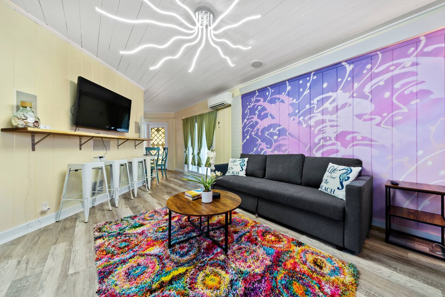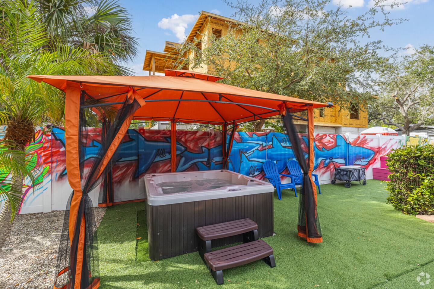 Enjoy a private Siesta Key retreat with bright, modern décor, a cozy bedroom, open living area, and a fully equipped kitchen. Step outside to the fenced backyard with a pool, hot tub, and colorful murals—perfect for relaxing or capturing fun photos. ★Your stay includes: ☀ 1 Bedroom + Sofa Beds ☀ 1 Bathroom with essentials & fresh towels ☀ Open-design living area with arcade & board games ☀ Fully equipped kitchen & dining area ☀ Private backyard with pool, hot tub, pergola, sun lounges, and BBQ grill ☀ Colorful murals perfect for photos ☀ 42" Smart TV & Wi-Fi ☀ Laundry & free parking ☀ Pet-friendly ★ LIVING ROOM Relax, play, or watch your favorite shows in this cozy, light-filled space. ☀ Two comfy sofas with pillows (convertible into extra beds) ☀ 42" Smart TV with Roku ☀ Chic coffee tables & reading lamps ☀ Arcade games & board games ★ KITCHEN & DINING Cook and dine in style with everything you need at your fingertips. ☀ Fully equipped kitchen: microwave, stove, oven ☀ Toaster, coffee maker, hot water kettle ☀ Refrigerator/freezer, dishwasher, sink, plates, glasses, silverware, pots & pans ☆Dining table with seating for 4 + kitchen bar with seating for 4 ★ BEDROOM Recharge in a comfortable, thoughtfully designed bedroom with premium bedding. ☀ Queen bed + single futon with memory-foam mattress, sheets & pillows ☀ HDTV ☀ Closet with hangers & shelves, dresser, nightstands with reading lamps ☆Additional sleeping: two living room sofas convert into queen-size beds ★ BATHROOM Enjoy a clean, spa-like bathroom with all essentials provided. ☀ Walk-in shower ☀ Vanity & mirror ☀ Toilet & towels ☀ Hair dryer & essential toiletries ★ OUTDOOR SPACE Step outside to soak up the Florida sun, swim, or relax in the hot tub. ☀ Private pool & pergola with luxurious hot tub ☀ Sun lounges & outdoor dining ☀ BBQ grill ☀ Life-size Connect 4 ☆Perfect for families, groups, and beach lovers—book now for an unforgettable stay! <b>★☆ Guest Attractions nearby in Siesta Key Beach</b> ☀ Crescent Beach, Sarasota – 2 min drive ☀ Point of Rocks – 5 min drive ☀ Turtle Beach – 7 min drive ☀ Siesta Key Craft Festival – 9 min drive ☀ Sarasota Beach – 9 min drive ☀ Sunset Beach – 9 min drive ☀ TPC Prestancia (Golf Club) – 15 min drive ☀ Sarasota Art Museum – 19 min drive ☀ Bayfront Park – 23 min drive ☀ South Lido Key Beach Park on the Gulf – 33 min drive ☀ The John and Mable Ringling Museum of Art – 34 min drive ☀ Ca' d'Zan (Historical Museum) – 36 min drive ☀ Quick Point Nature Preserve – 30 min drive ☀ Ted Sperling Park Nature Trail – 31 min drive ☀ South Lido County Park – 31 min drive ☀ Manatee Village Historical Park – 45 min drive <b>★☆ Restaurants Nearby in Siesta Key Beach</b> ☀ Clayton's Siesta Grille – 2 min walk ☀ Captain Curt's Crab & Oyster Bar – 5 min walk ☀ SPEARFISH GRILLE – 5 min walk ☀ Daiquiri Deck Siesta Key Village – 8 min walk ☀ Gilligan's Island Bar & Grill – 8 min drive ☀ Siesta Key Oyster Bar – 8 min drive ☀ Florence & The Spice Boys – 8 min drive ☀ Miguel's Restaurant – 9 min walk ☀ Summer House Resturant – 9 min drive ☀ Another Broken Egg Cafe – 9 min drive ☀ Lobster Pot Restaurant – 9 min drive ☀ Casa Masa - The Landings – 9 min drive ☀ Aji Ceviche Bar Sarasota – Peruvian Restaurant – 9 min drive ☀ Turtles Restaurant – 7 min drive ☀ Capo Pazzo Pizzeria + Kitchen – 6 min drive <b>★☆ Airports in Siesta Key Beach</b> Sarasota Bradenton International Airport - 25 min drive Sarasota Bradenton Intl. Airport - 28 min drive <b>★☆ Transportation Nearby Siesta Key Beach</b> Midnight Pass Rd @ Dockside Pl - 5 min drive Beach Rd @ Beach Way Dr - 7 min drive Beach Rd @ Lake House Cir FS - 6 min drive <b>★☆ Hospitals in Siesta Key Beach</b> SMH Urgent Care Center at Stickney Point Rd - 6 min drive Sarasota Memorial Hospital - 14 min drive HCA Florida Sarasota Doctors Hospital - 21 min drive <b> ★☆ Upcoming Events in Siesta Key Beach:</b> ☀ Elton John Tribute Concert: Feb 27, 2026 ☀ Guns N' Roses Tribute Concert: Feb 28, 2026 ☀ Sarasota Jazz Festival: Mar 9–14 ☀ Sarasota County Fair: Mar 13–22 ☀ Spring Break Season: All Month ☀ Siesta Key Drum Circle: March, 2026 Every Sunday in ☀ Siesta Key Farmers Market: March 2026, Every Sunday (9:00 AM – 1:00 PM) ☀ Embracing Our Differences (Outdoor Art Exhibit)—till April 13, 2026