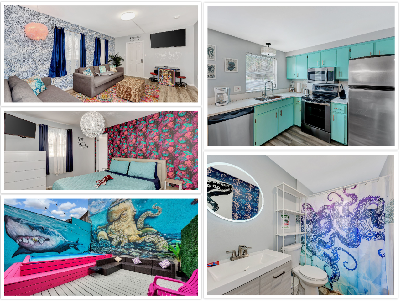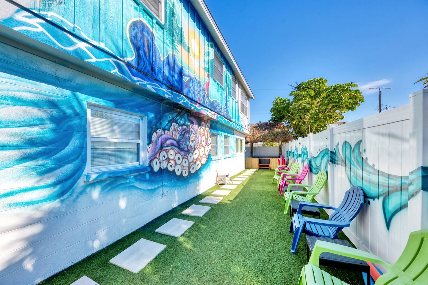 COMPLETELY PRIVATE! Let's start our tour of this first-floor oasis in the spacious, bright, and artsy open-design living area, which combines a fun living room, a fully equipped kitchen, and an inviting dining area. Further explore the home to discover three bedrooms designed to provide the ultimate rest and relaxation after a day of experiencing the picturesque Siesta Key! Sun shines through large windows and patio doors over the entire space, and together with colorful details and bright floors, it creates a unique atmosphere that will stay with you long after you leave. Challenge your loved ones at the arcade game table or step into the fully fenced outdoor area with a sun-soaked deck and a pampering Tiki hut. The unique tanning deck features a stunning splash pool and a mesmerizing mermaid mural that is perfect for an #Instaworthy photo session that will delight your followers. Finally, the tiki hut with the luxurious hot tub is designed to melt the stress away! ★ LIVING ROOM ★ Spend a slow afternoon sitting on a comfy sofa and watching a movie marathon with your family and friends. ✔ Two Snug Sofas with Pillows (can be converted into extra beds) ✔ Smart TV ✔ Chic Coffee Tables & Reading Lamps If you are looking for a more active way to pass the time, you'll love the game section of the living room. ✔ Arcade Table ★ KITCHEN & DINING ★ The kitchen offers plenty of working areas with ample countertops and stainless-steel cooking amenities, allowing you to prepare tasty homemade meals for the whole group. ✔ Microwave ✔ Stove ✔ Oven ✔ Blender ✔ Toaster ✔ Coffee Maker ✔ Hot Water Kettle ✔ Refrigerator/Freezer ✔ Dishwasher ✔ Sink - Hot & Cold Water ✔ Plates ✔ Glasses ✔ Silverware ✔ Pots & Pans The dining area is conveniently situated between the kitchen and the living room, allowing you to serve and enjoy those delicious meals without missing a moment of fun! ✔ Kitchen Bars with Seating for 10 ★ SLEEPING ARRANGEMENTS - 3 BEDROOMS ★ These are the most soothing areas of the home. Here, you will find the comfort needed to relax and rest after a fabulous day exploring Siesta Key and its spectacular beaches. Get those precious hours of sleep; tomorrow is a brand-new day! ♛ Master Bedroom: Queen-Size Bed + Queen-Size Futon ♛ Bedroom 2: Queen-Size Bed ♛ Bedroom 3: Queen-Size Bed All three bedrooms are equipped with a similar set of amenities. ✔ Premium Memory-Foam Mattresses, Sheets, and Pillows ✔ Smart TVs ✔ Closets with Hangers and Shelves ✔ Dressers with Spacious Drawers ✔ Night Stands with Reading Lamps ***If more sleeping space is required, two living room sofas can be quickly converted into two Queen-Size Memory Foam Sofa Beds. ★ BATHROOMS ★ We have taken special care to furnish and design two full bathrooms with all the necessities, so you don't have to worry about packing or buying your own. ✔ Bathtub with a Shower ✔ Walk-In Shower ✔ Vanity ✔ Mirror ✔ Toilet ✔ Towels ✔ Hair Dryer ✔ Essential Toiletries ★ OUTDOORS (TIKI HUT & POOL AREA) ★ If you want to immerse yourself in the beautiful outdoors but don't feel like leaving the property, the private patio with the luxurious hot tub is an ideal place to do just that. ✔ Unique Tiki Hot Tub ✔ Cozy Seating Area ✔ Outdoor Shower The property boasts an alluring pool area with a one-of-a-kind mural that creates an oasis where you can cool off while sipping your favorite cocktail. It doesn't get much better than this! ✔ Luxurious Splash Pool ✔ Lounge Seating Areas ✔ String Lights Bring your friends to this gorgeous home in the fantastic Siesta Key beachfront neighborhood. We know there's no place like home, but this gem will come at a close second. <b> ★☆ Upcoming Events in Siesta Key Beach:</b> ☀ Elton John Tribute Concert: Feb 27, 2026 ☀ Guns N' Roses Tribute Concert: Feb 28, 2026 ☀ Sarasota Jazz Festival: Mar 9–14 ☀ Sarasota County Fair: Mar 13–22 ☀ Spring Break Season: All Month ☀ Siesta Key Drum Circle: March, 2026 Every Sunday in ☀ Siesta Key Farmers Market: March 2026, Every Sunday (9:00 AM – 1:00 PM) ☀ Embracing Our Differences (Outdoor Art Exhibit)—till April 13, 2026